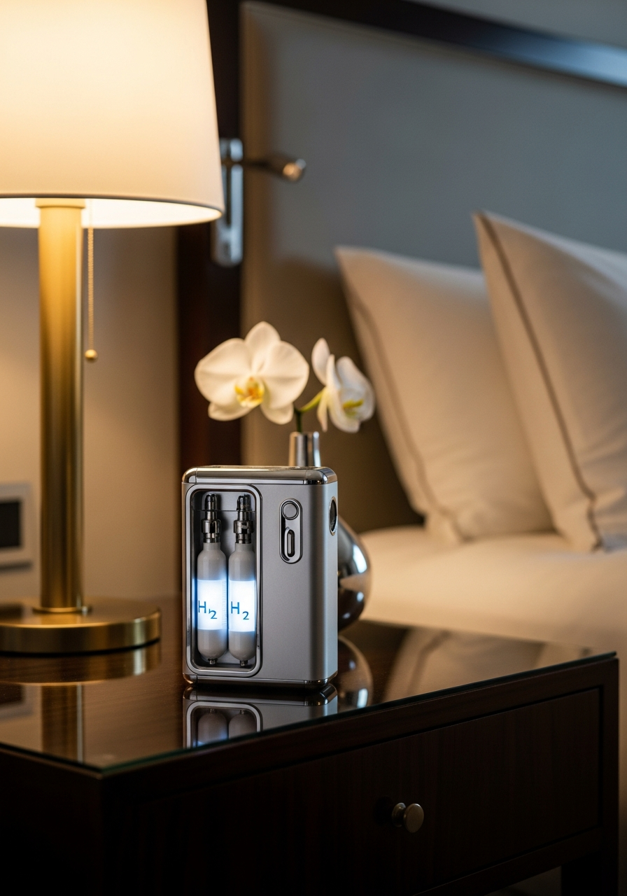 The Days Unit portable hydrogen injector is delivered by your butler or concierge directly to the guest room. Long-stay guests, wellness travelers, and medical tourists can maintain their hydrogen wellness routine throughout their stay — not just during scheduled spa visits. This creates an intimate, personalized touchpoint that sets your property apart from every competitor offering the same nightly rate.