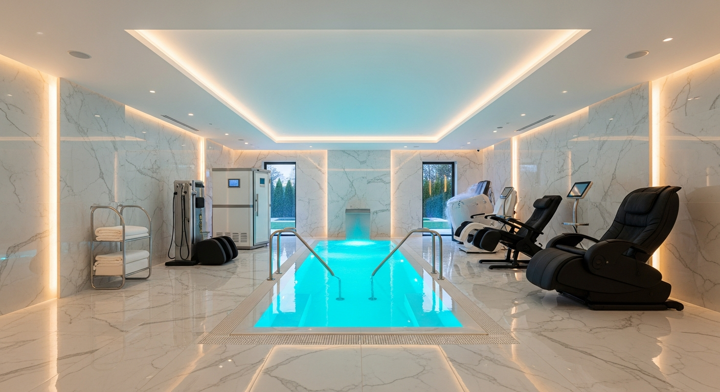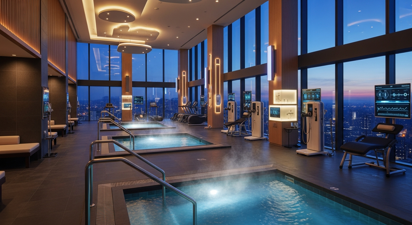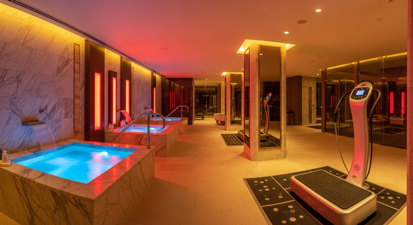 STI designed and equipped a complete hydrotherapy and recovery floor — HomePlunge systems, Power Plate vibration stations, and premium STI Textiles throughout. Opened to five-star guest reviews within 30 days.
