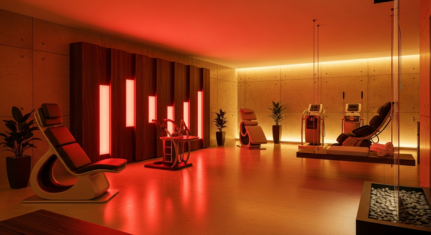 A premium members-only wellness club in Midtown Manhattan. STI sourced and installed full STI Red Light Systems panels, Evolt 360 body composition stations, and LEC acoustic wave therapy suites — turning a blank floor into a fully operational recovery destination.
